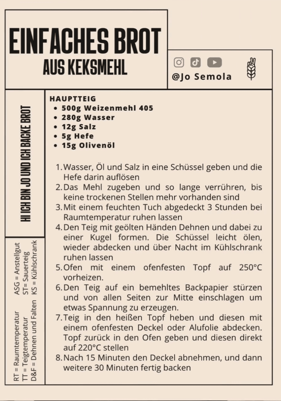 Super einfaches Rezept, jedoch fehlte zu den Zeitpunkt als ich es Backen wollte die Mengenangabe für das Salz. Außerdem sollte meiner Meinung nach auch die Ruhezeit über Nacht auch oben genannt werden!