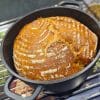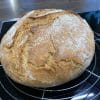 Das Brot in den Topf stürzen und sofort auf 230°C reduzieren. 20 Minuten mit Deckel backen.