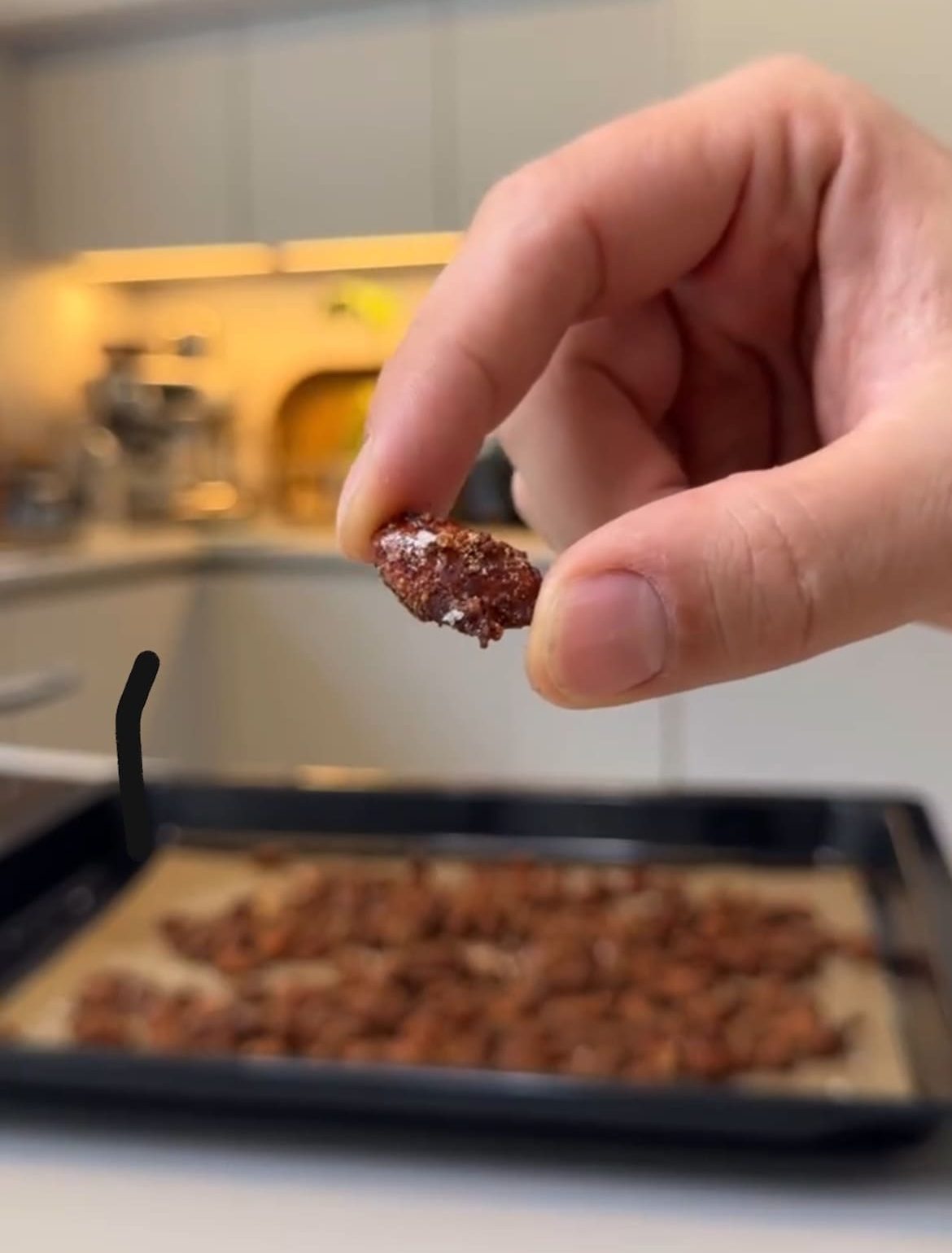 Verteile die fertigen Mandeln auf einem Backblech und lasse sie etwas abkühlen. Streue nach Belieben noch etwas von den Salzblüten darüber für den finalen Touch.