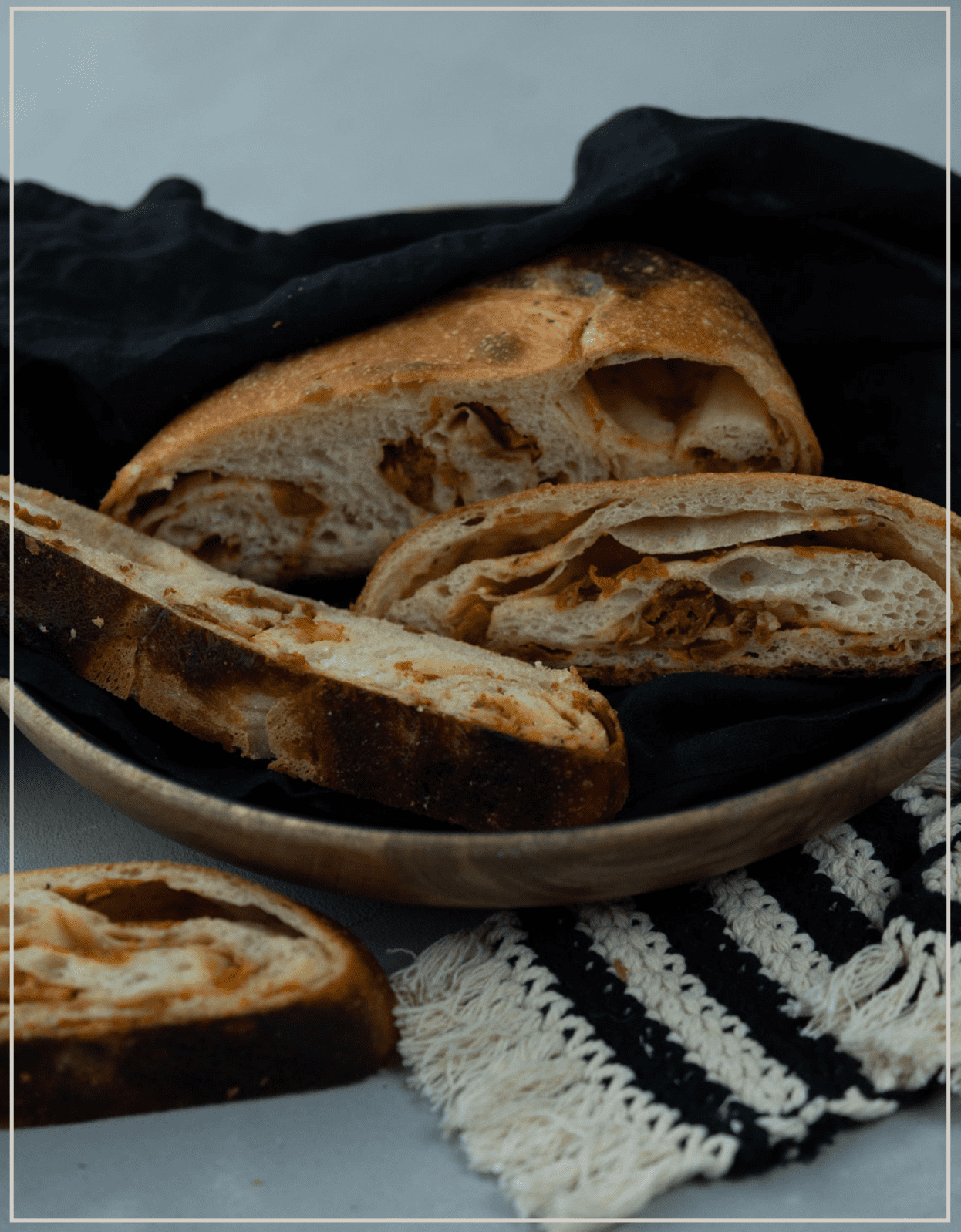 Für den Teig alle Zutaten 8–10 Minuten verkneten und den Teig 2 Stunden bei 24–26 °C anspringen lassen, währenddessen dreimal dehnen und falten.
