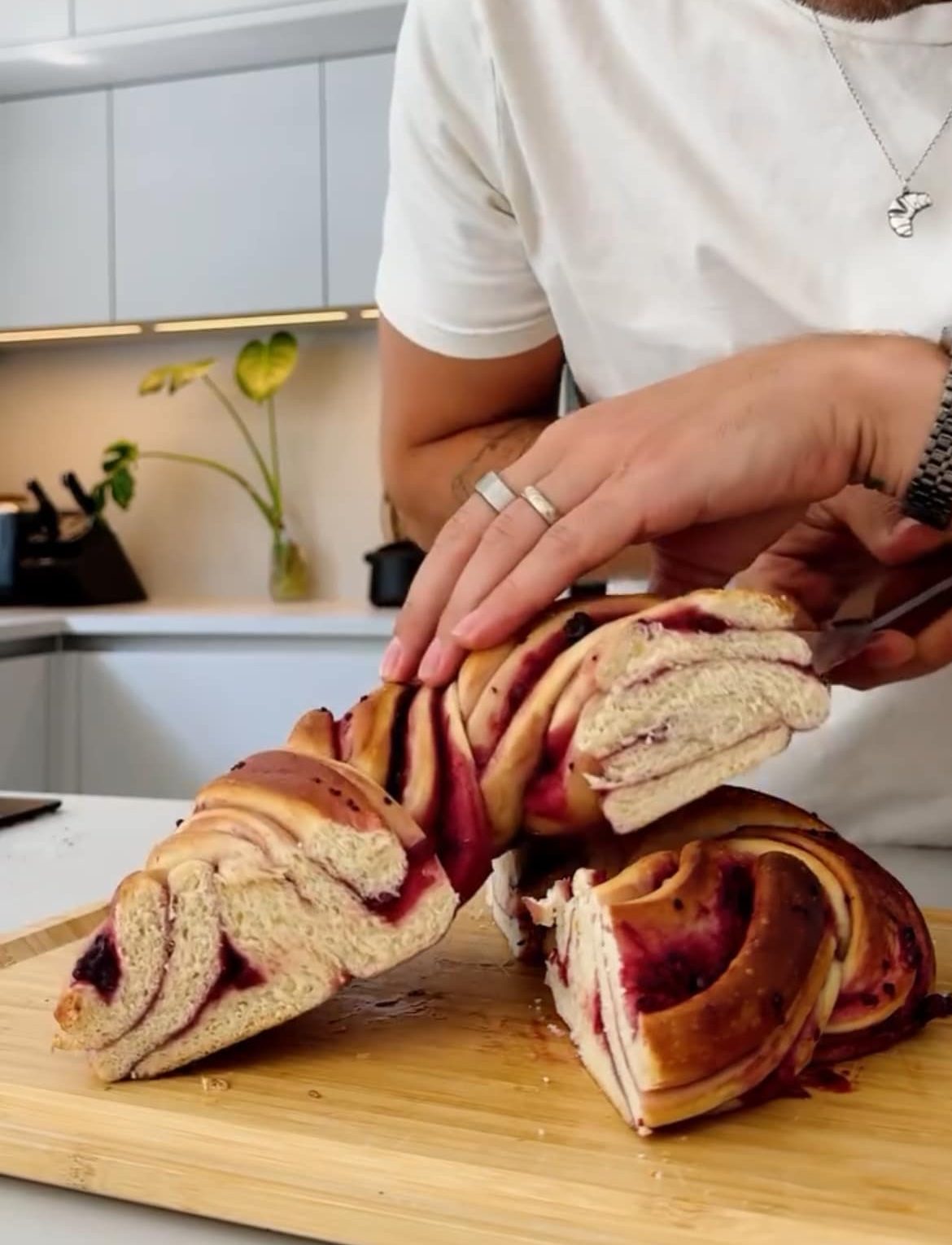 „Luftiger Hefekranz mit fruchtiger Johannisbeermarmelade und feinem Zitronenaroma – ein süßer Genuss für besondere Anlässe.“