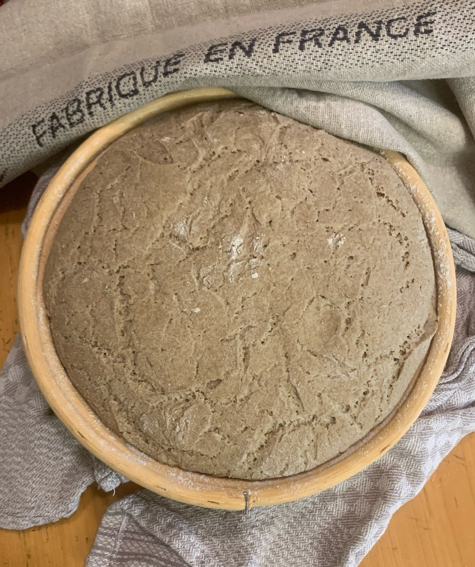 Ich habe ein Weizen-Anstellgut auf Roggen-Vollkorn umgezüchtet und das Brot dann mit reinem Vollkornmehl und etwas mehr Wasser gebacken.