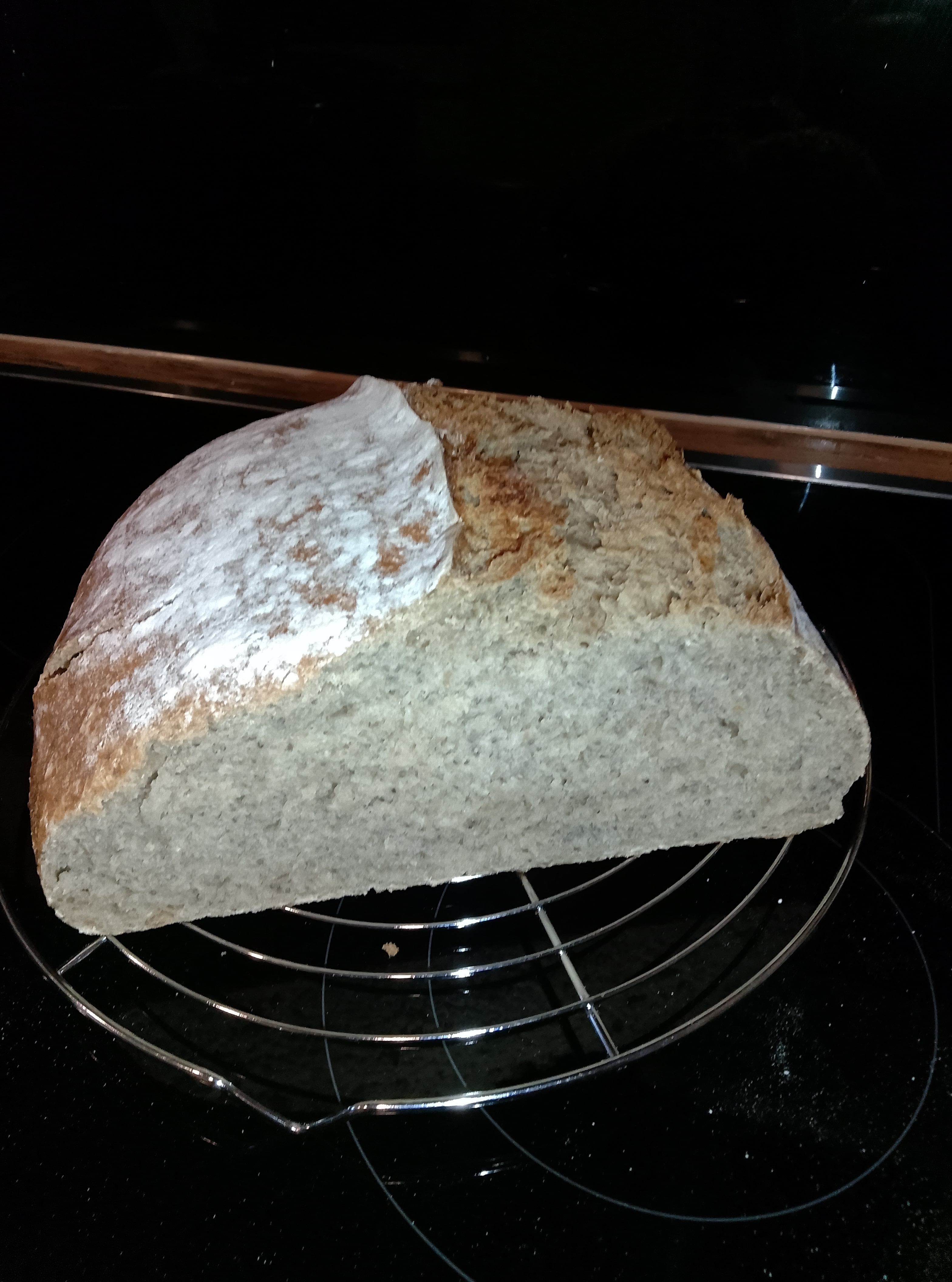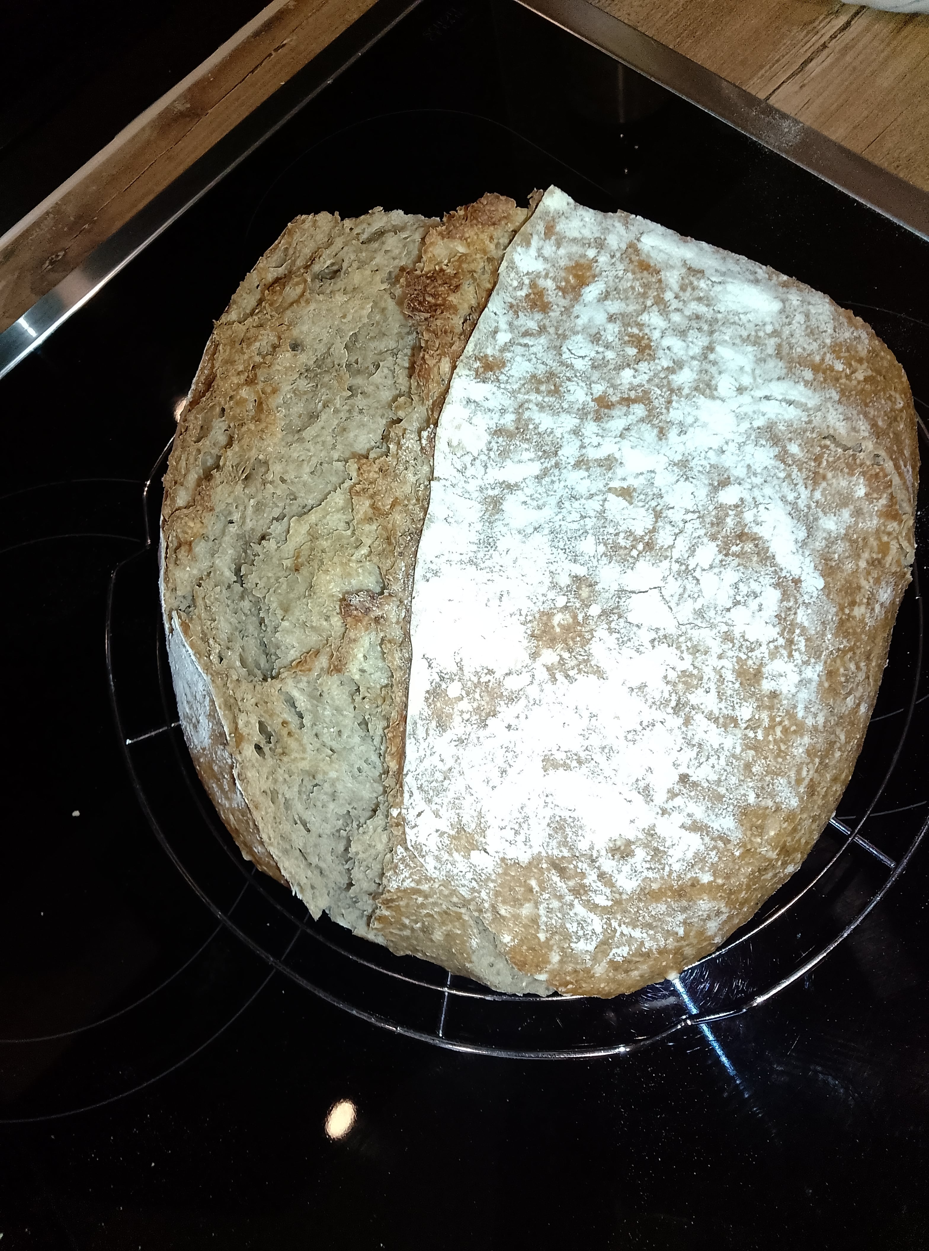 Habe im Gusseisentopf gebacken und ein Weizen Anstellgut verwendet.